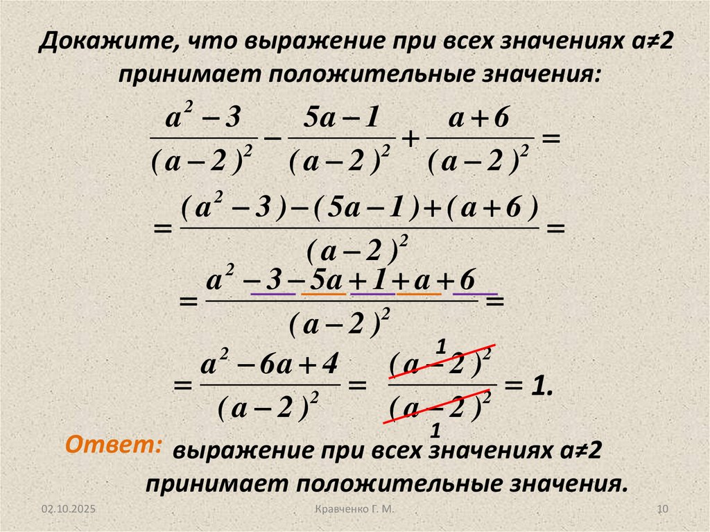Докажите, что выражение при всех значениях а≠2принимает положительные значения:
