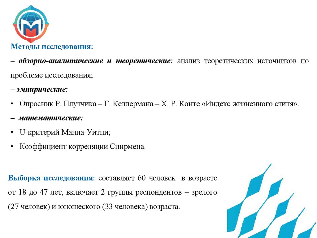 Методы исследования:– обзорно-аналитические и теоретические: анализ теоретических источников по