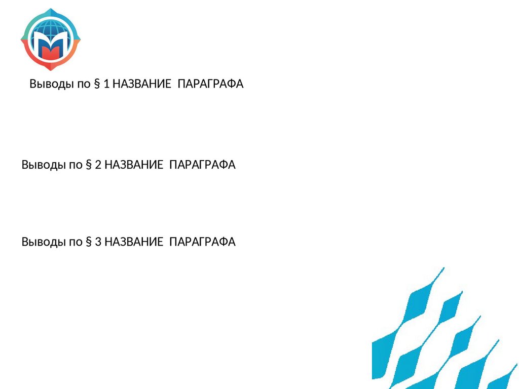 Выводы по § 1 НАЗВАНИЕ ПАРАГРАФАВыводы по § 2 НАЗВАНИЕ ПАРАГРАФА