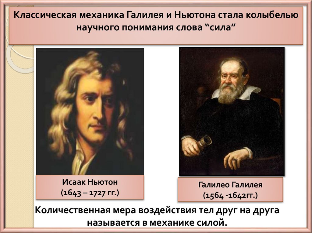 Классическая механика Галилея и Ньютона стала колыбельюнаучного понимания слова “сила”