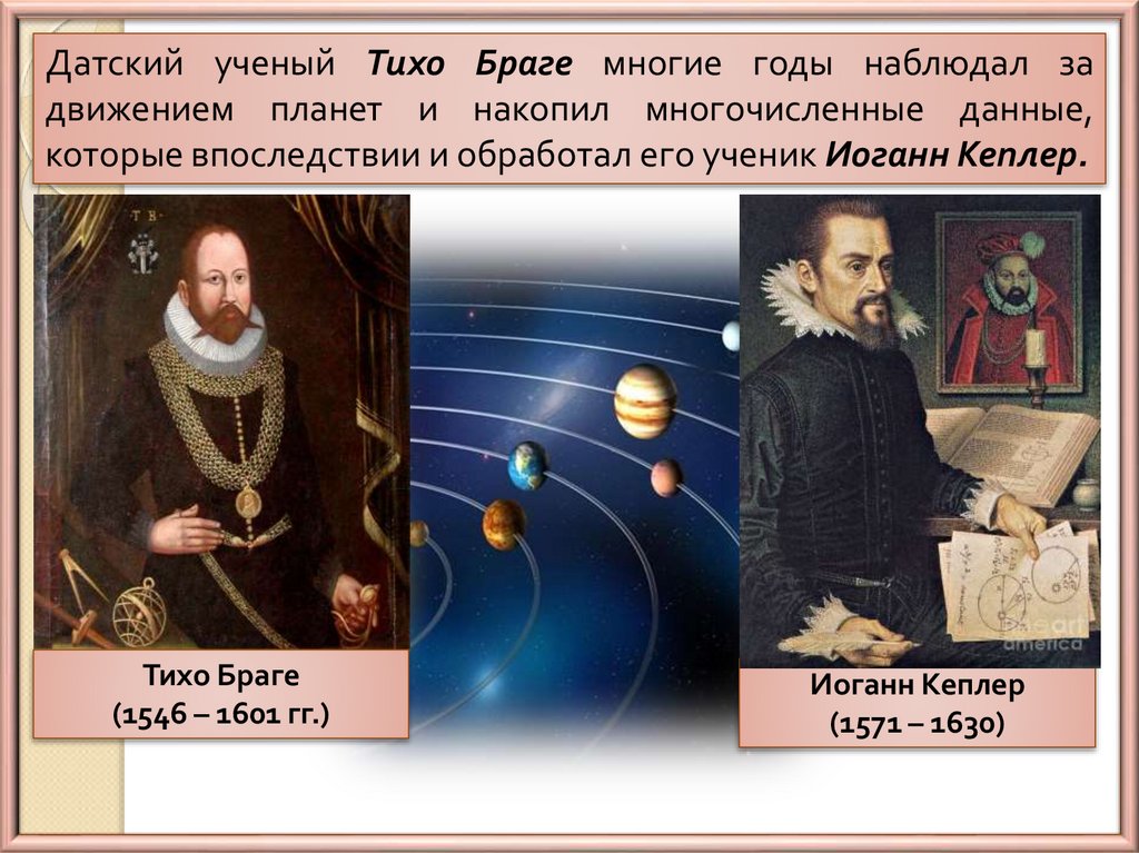 Датский ученый Тихо Браге многие годы наблюдал задвижением планет и накопил многочисленные данные,