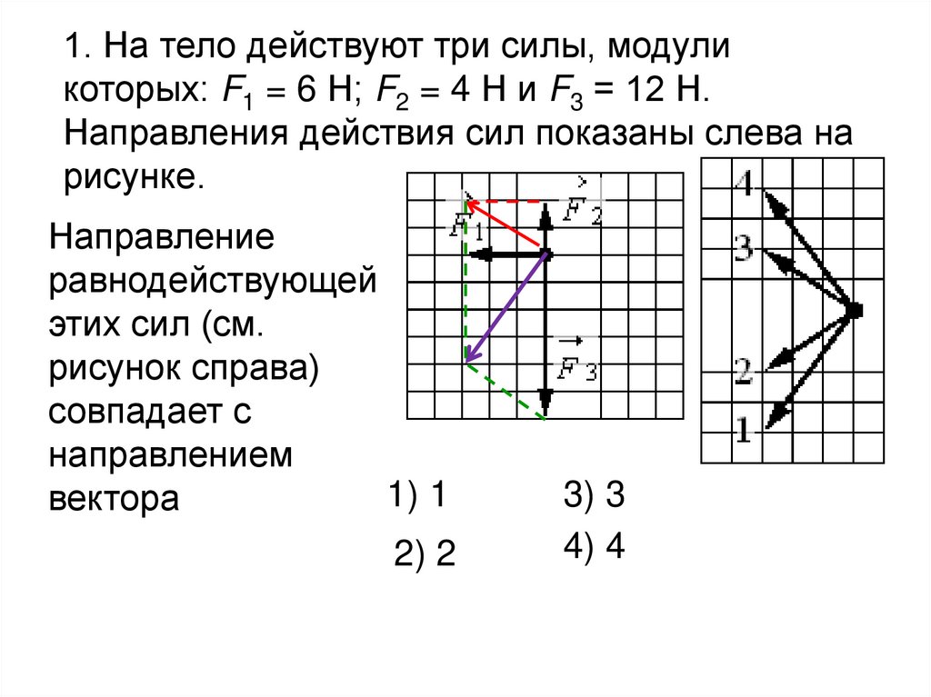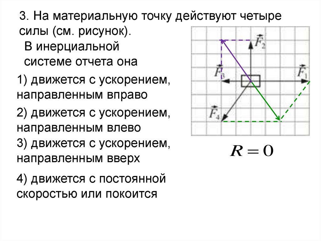 3. На материальную точку действуют четыресилы (см. рисунок).