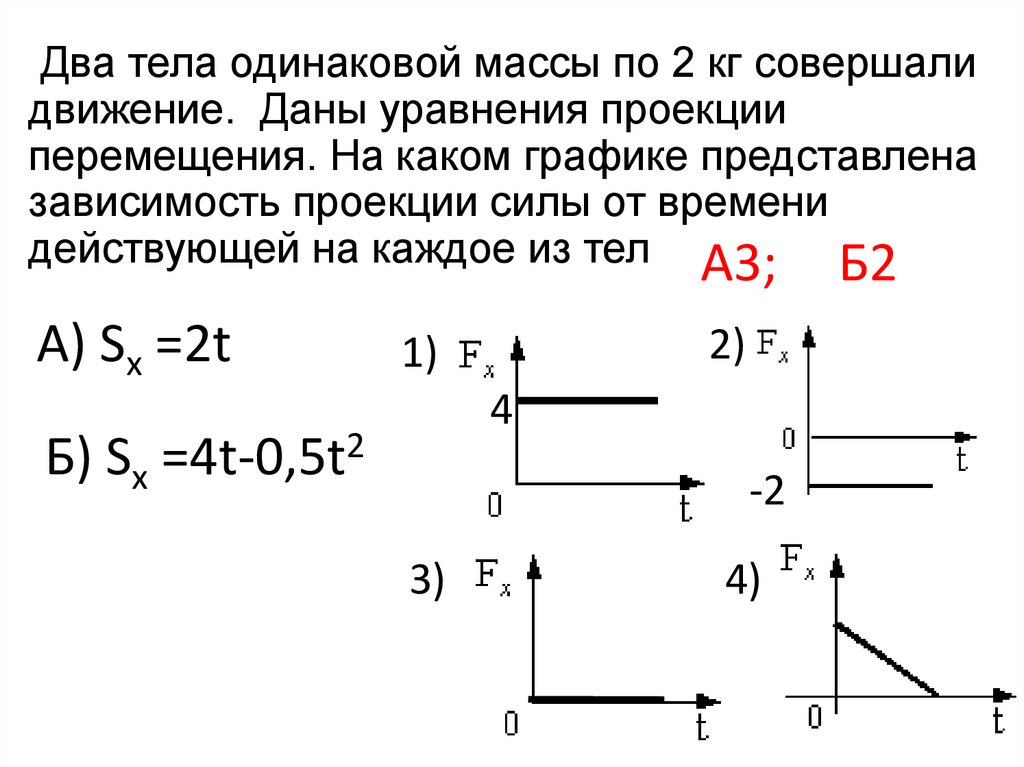 Два тела одинаковой массы по 2 кг совершалидвижение. Даны уравнения проекции