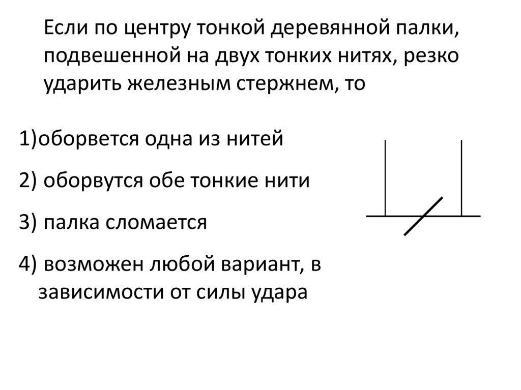 Если по центру тонкой деревянной палки,подвешенной на двух тонких нитях, резко