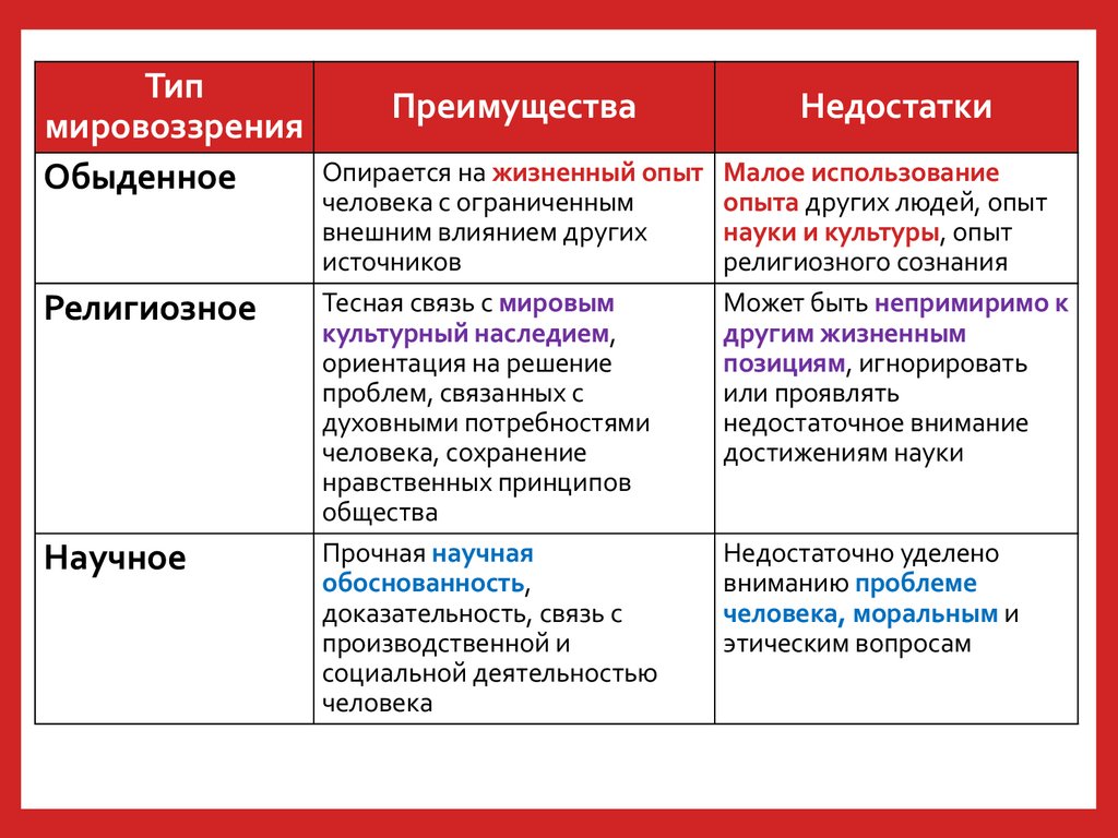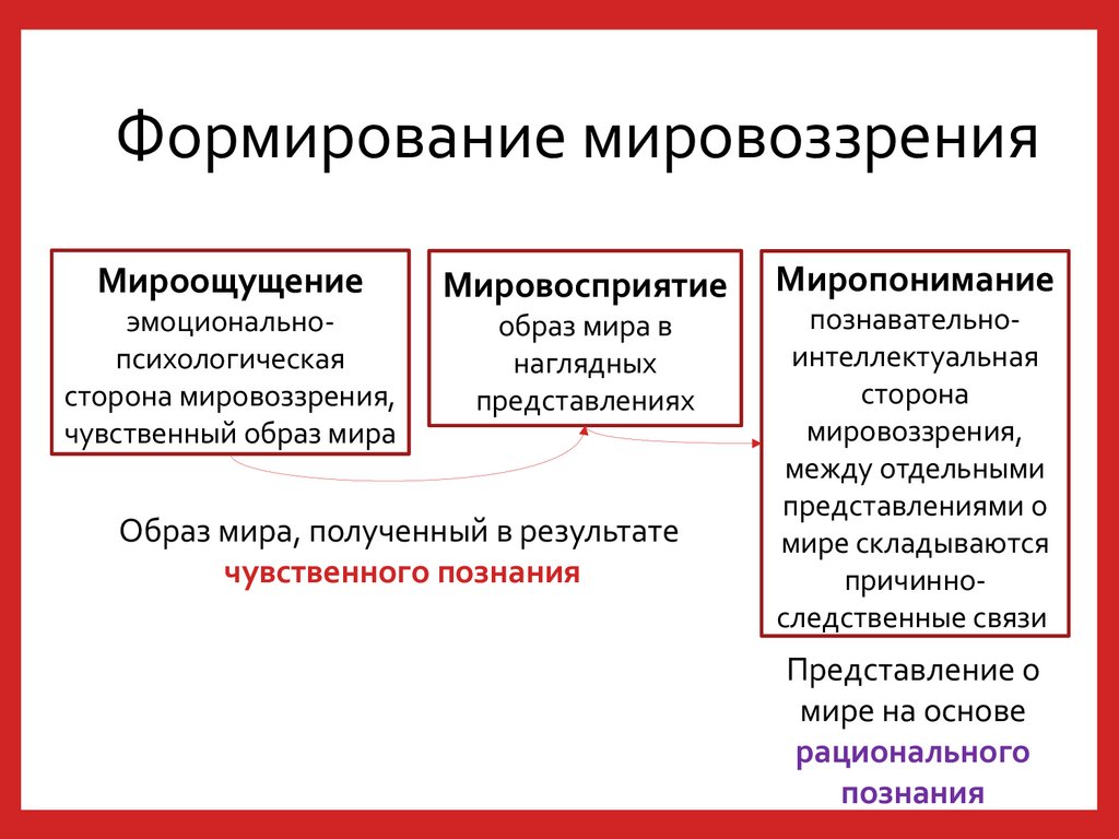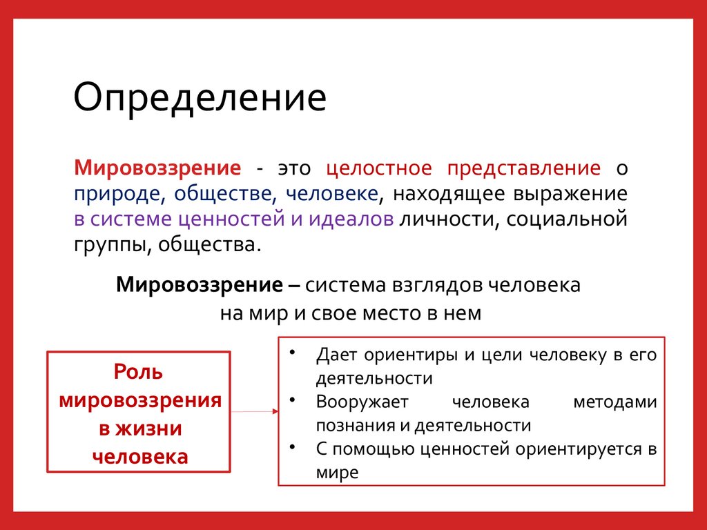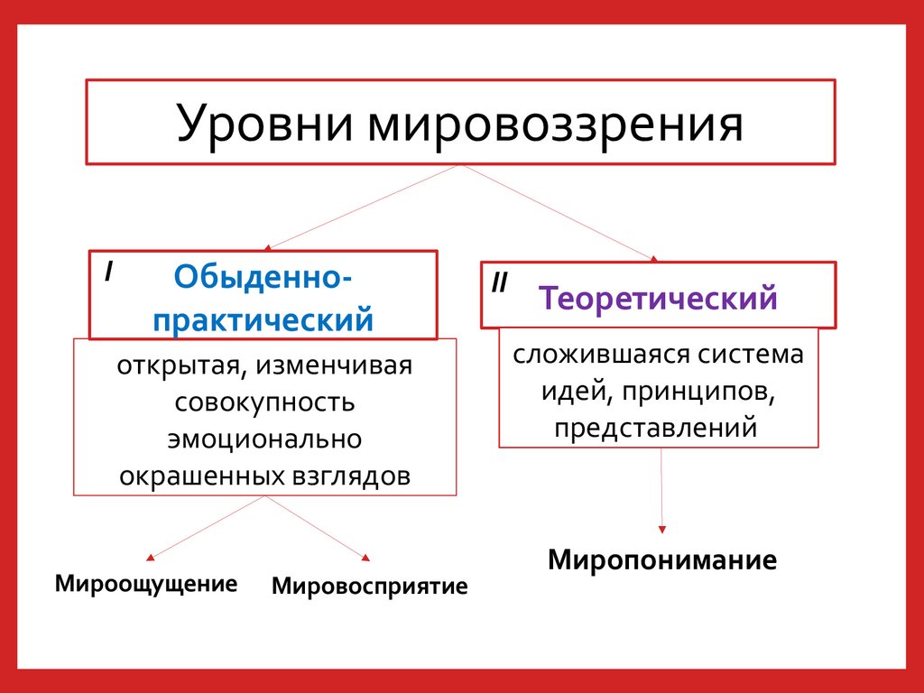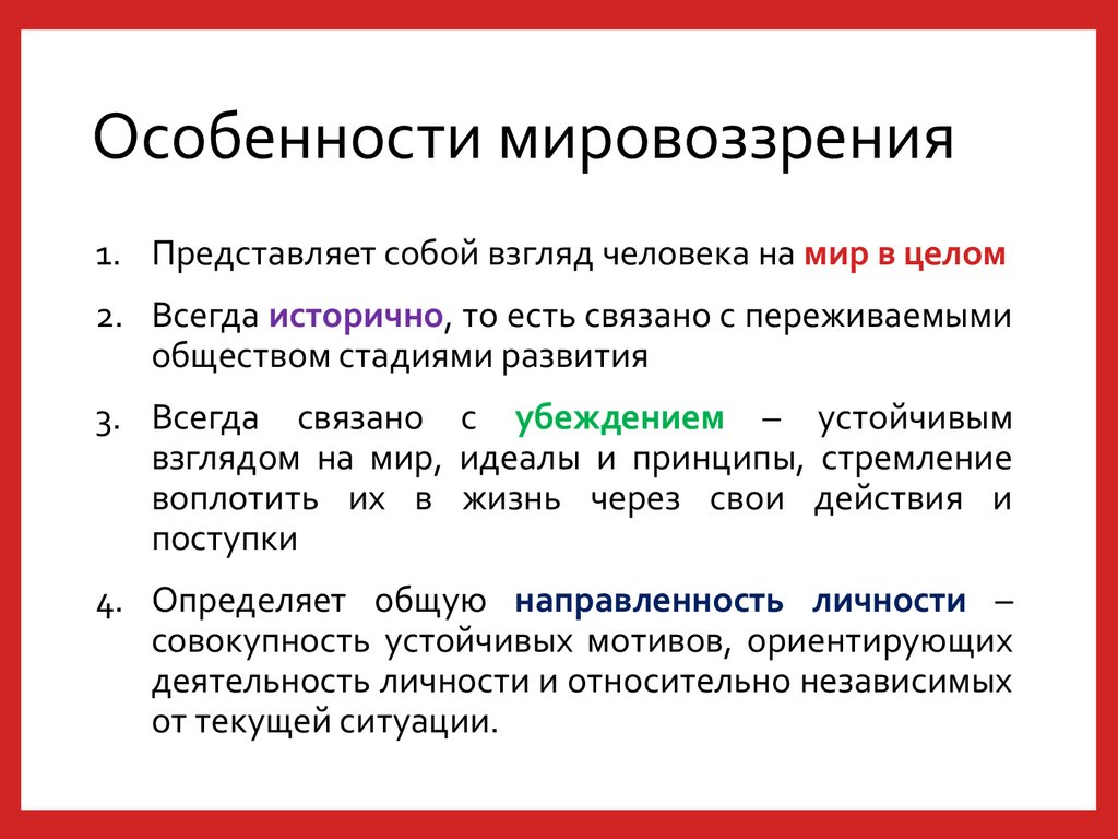 Особенности мировоззрения1. Представляет собой взгляд человека на мир в целом