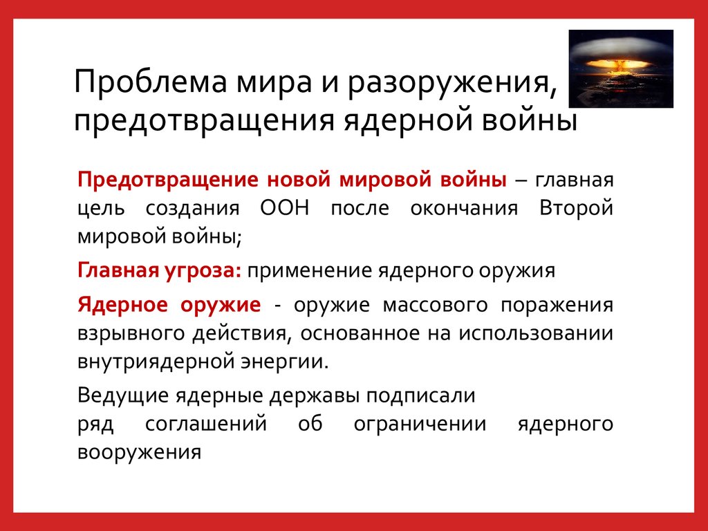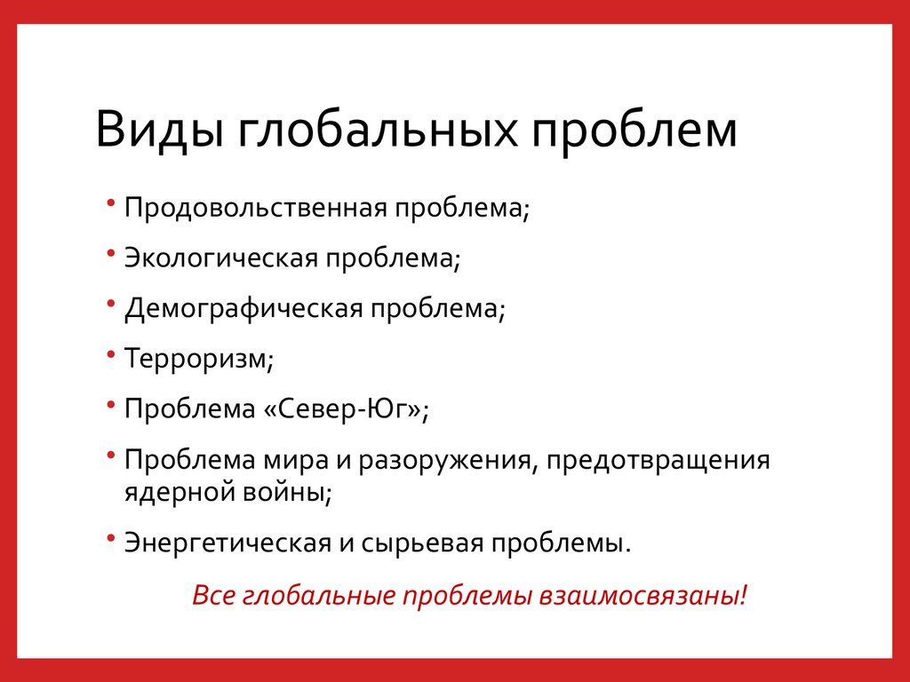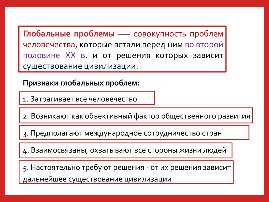 Глобальные проблемы –— совокупность проблемчеловечества, которые встали перед ним во второй