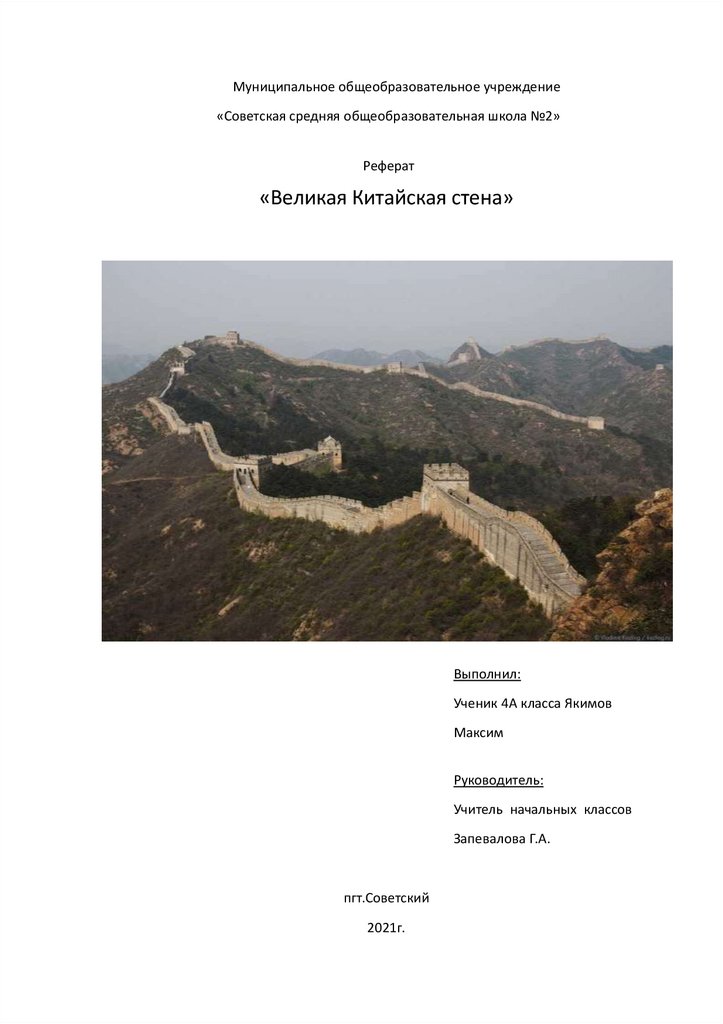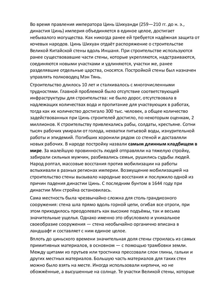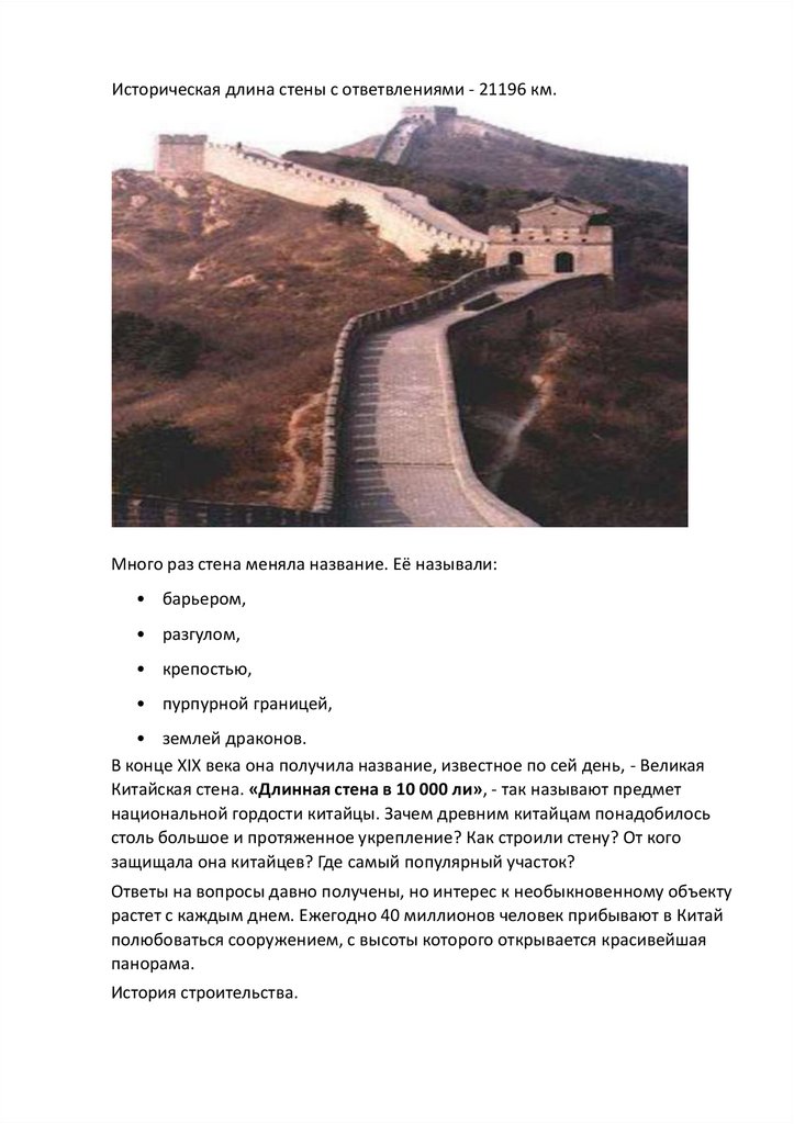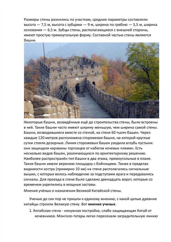 о Великой Китайской стене. Она мне очень запомнилась, и я решил написать