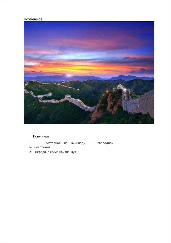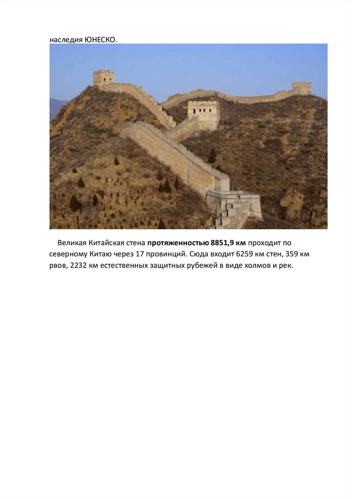наследия ЮНЕСКО.Великая Китайская стена протяженностью 8851,9 км проходит по