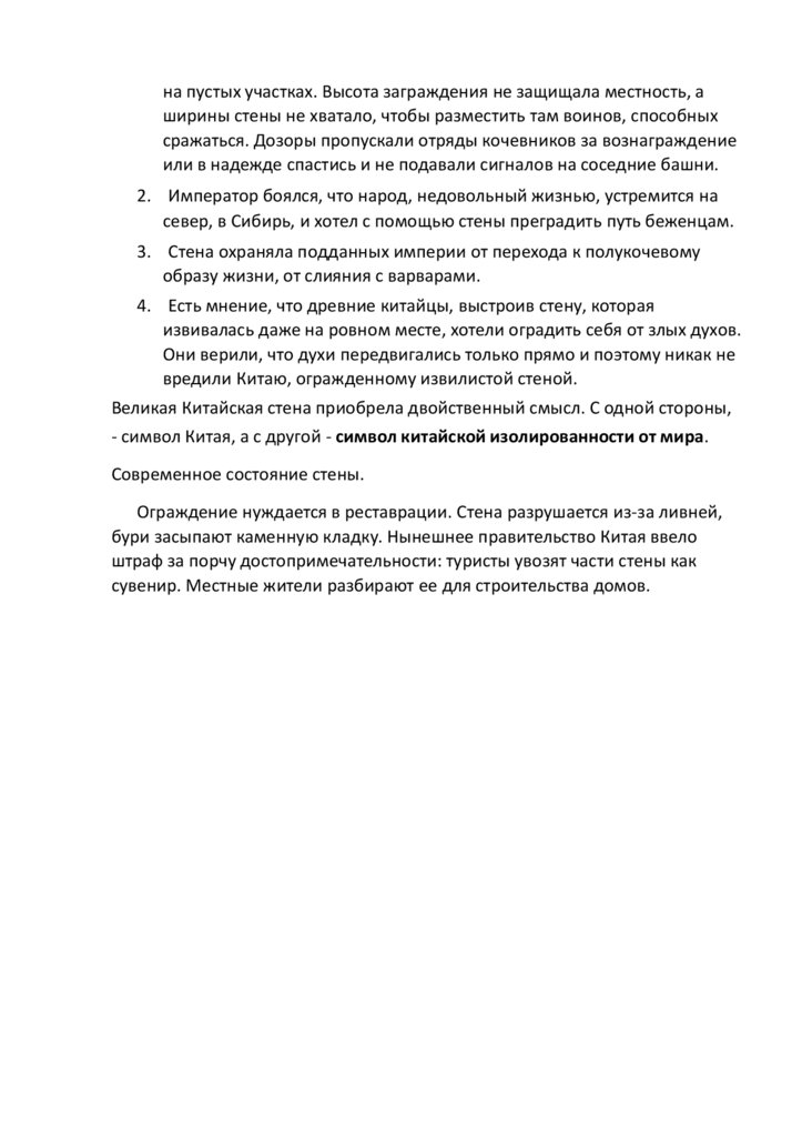 1. Китайская стена - ненужная постройка, слабо защищающая Китай от