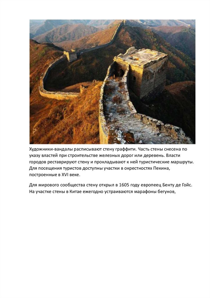 городов реставрируют стену и прокладывают к ней туристические маршруты.
