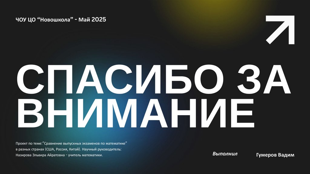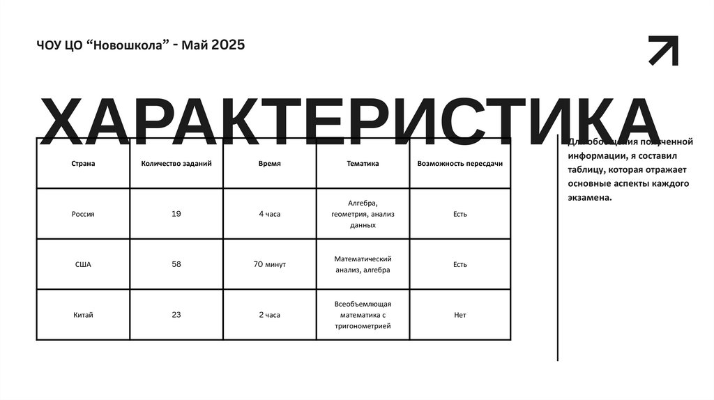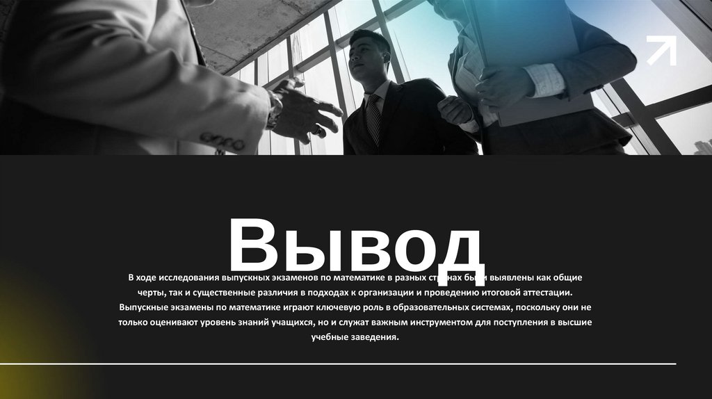ВыводВ ходе исследования выпускных экзаменов по математике в разных странах были выявлены как общие