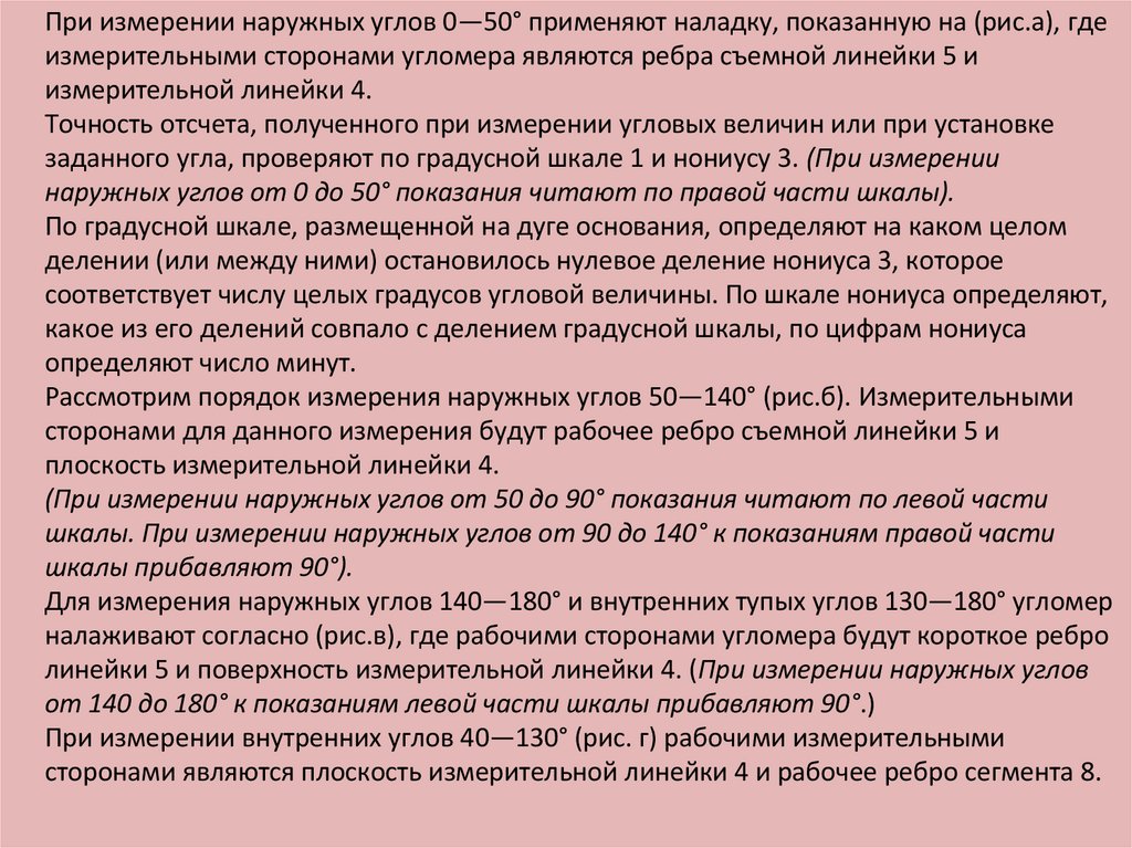 рабочая плоскость корпуса были совмещены со сторонами измеряемого угла.