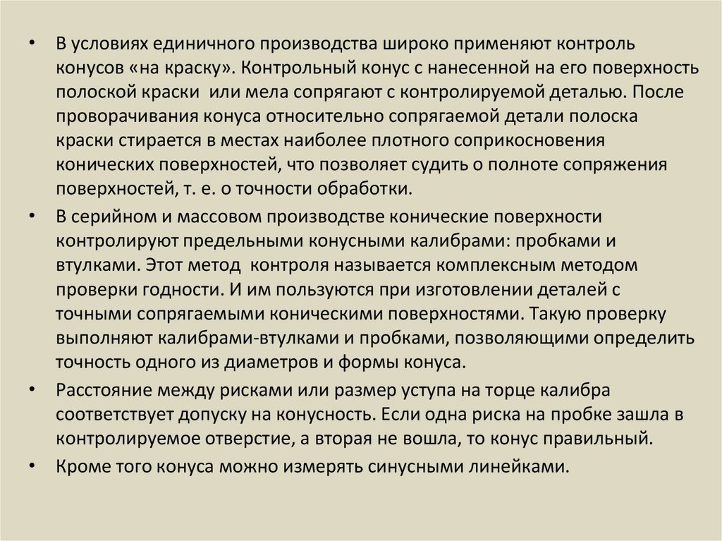 • В условиях единичного производства широко применяют контрольконусов «на краску». Контрольный конус с нанесенной на его поверхность