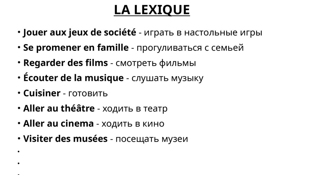 LA LEXIQUE• Jouer aux jeux de société - играть в настольные игры