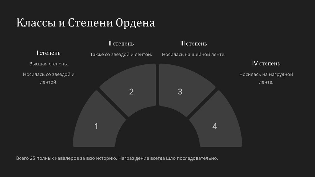 Всего 25 полных кавалеров за всю историю. Награждение всегда шло последовательно.