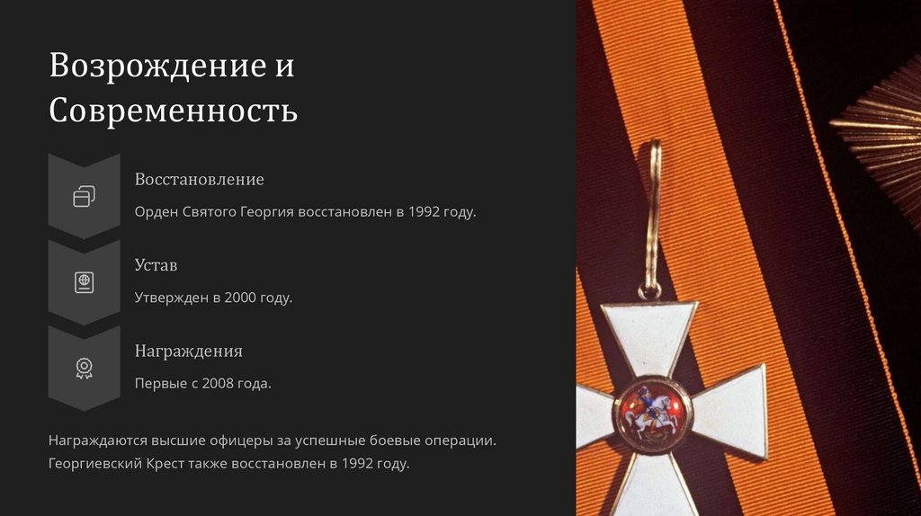 Нормативные акты о восстановлении Ордена Святого Георгия.