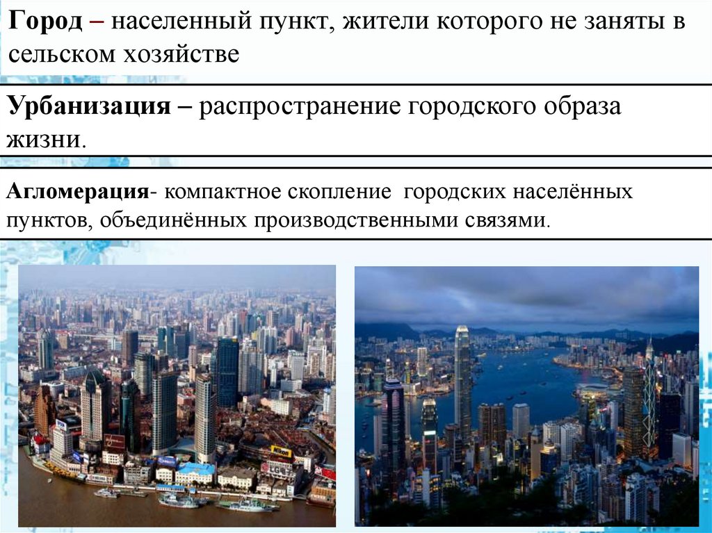 Город – населенный пункт, жители которого не заняты всельском хозяйстве