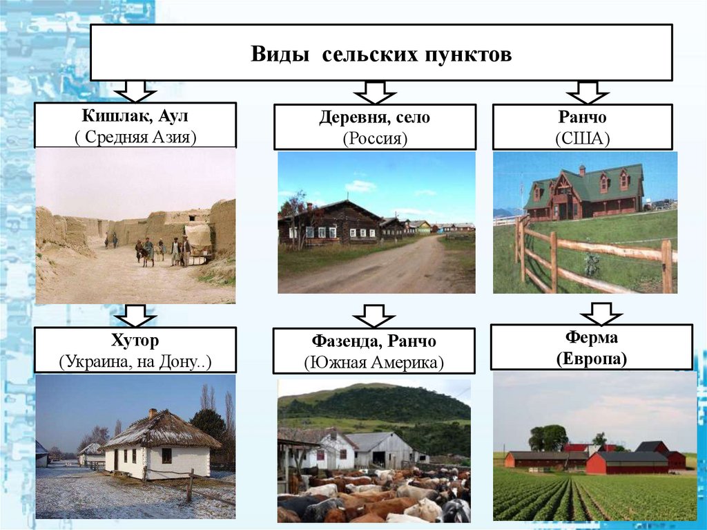 Виды сельских пунктовКишлак, Аул