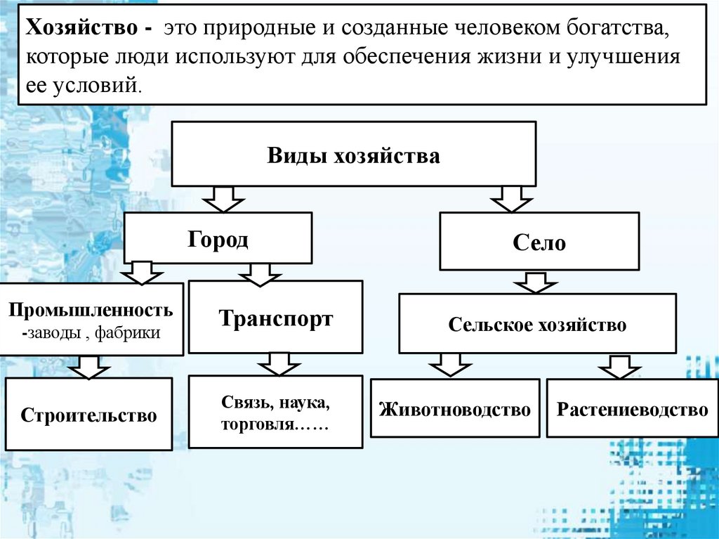 Хозяйство - это природные и созданные человеком богатства,которые люди используют для обеспечения жизни и улучшения