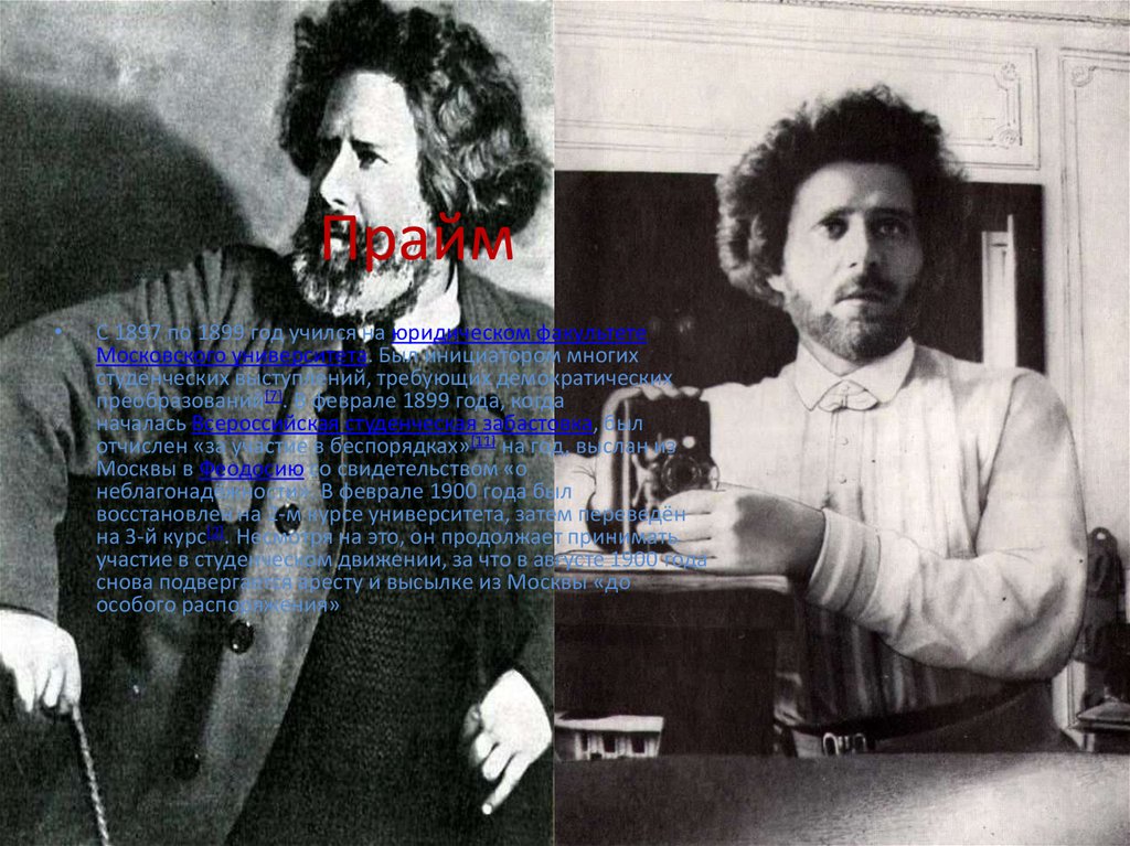 ПраймС 1897 по 1899 год учился на юридическом факультете