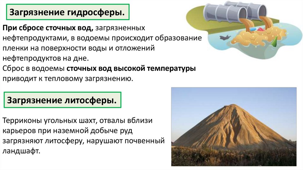 Загрязнение гидросферы.При сбросе сточных вод, загрязненных