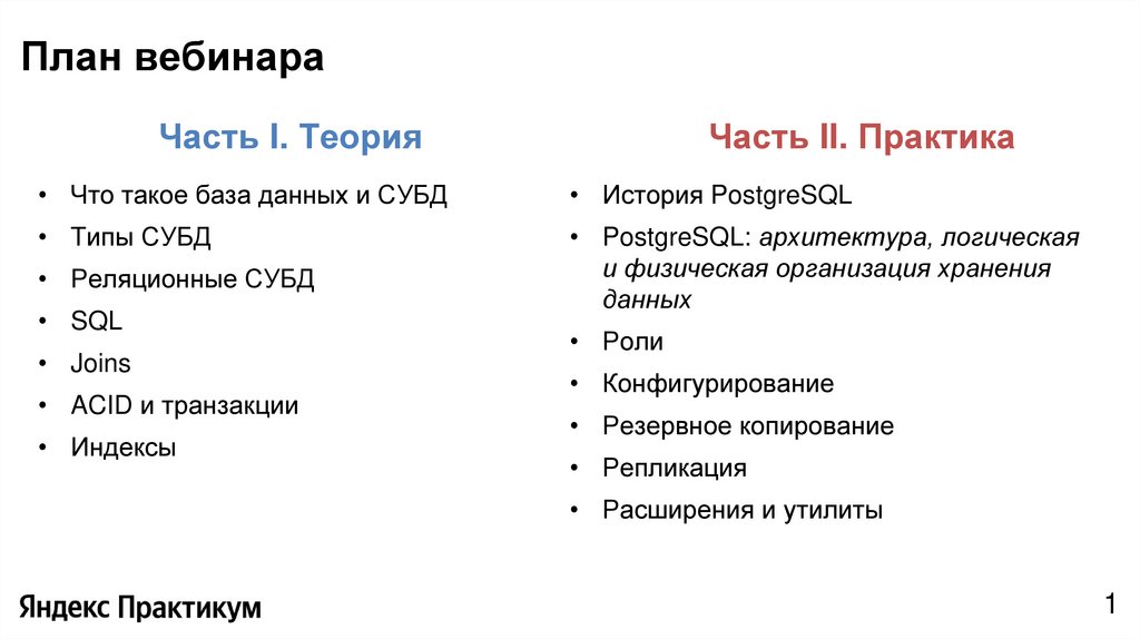 План вебинараЧасть I. Теория