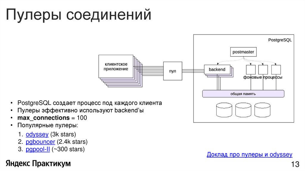 Пулеры соединенийPostgreSQL создает процесс под каждого клиента