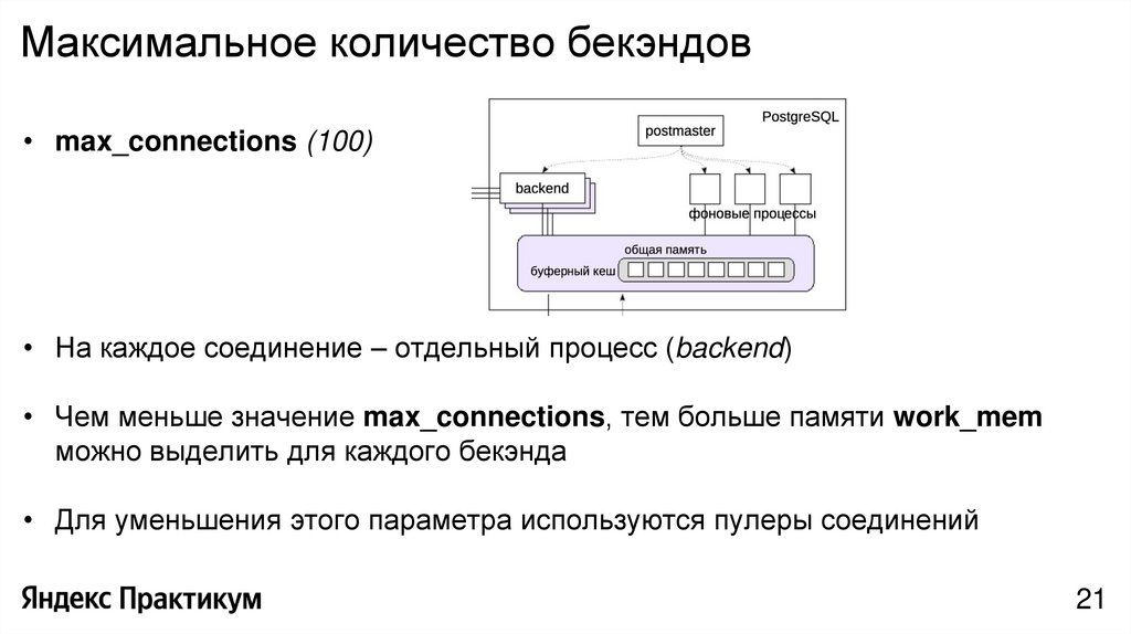 Процесс postmaster fork’ает процесс backend