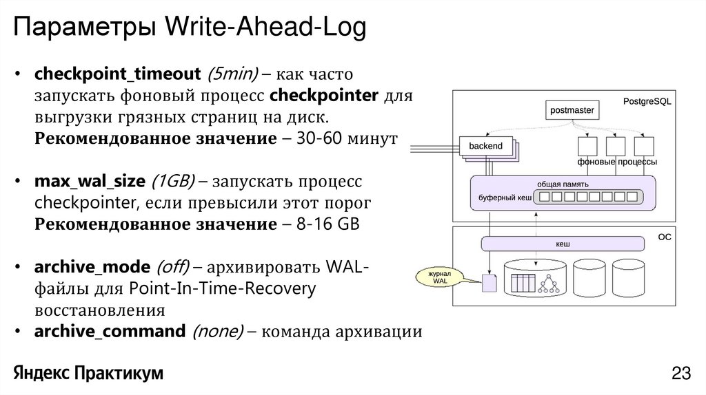 • max_wal_size (1GB) – запускать процесс