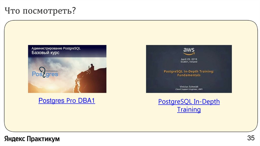 Что посмотреть?Postgres Pro DBA1