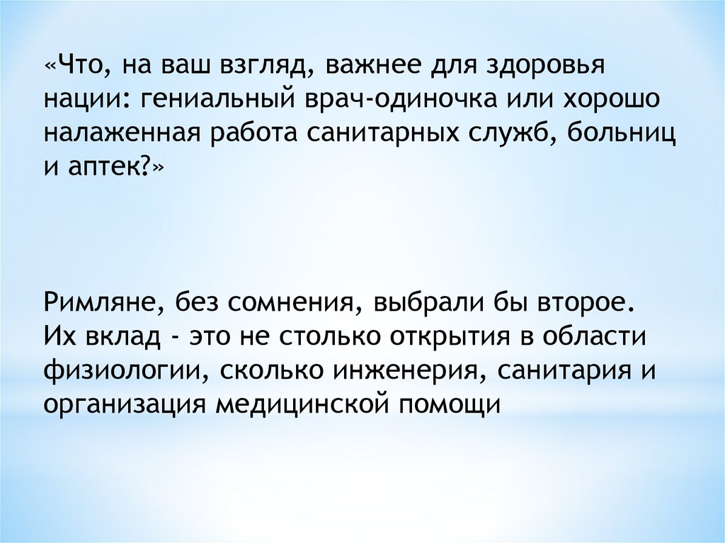 Древний Рим создал среду, в котороймедицина могла эффективно работать на