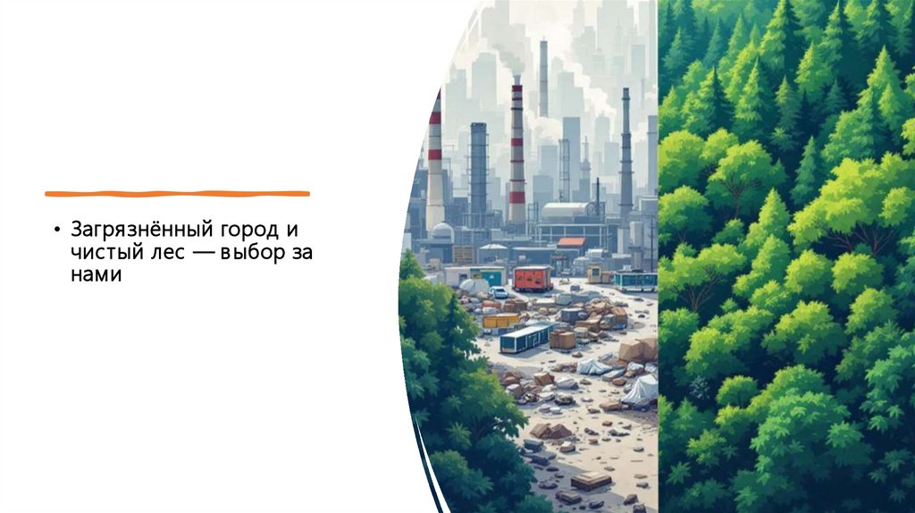 • Загрязнённый город ичистый лес — выбор за
