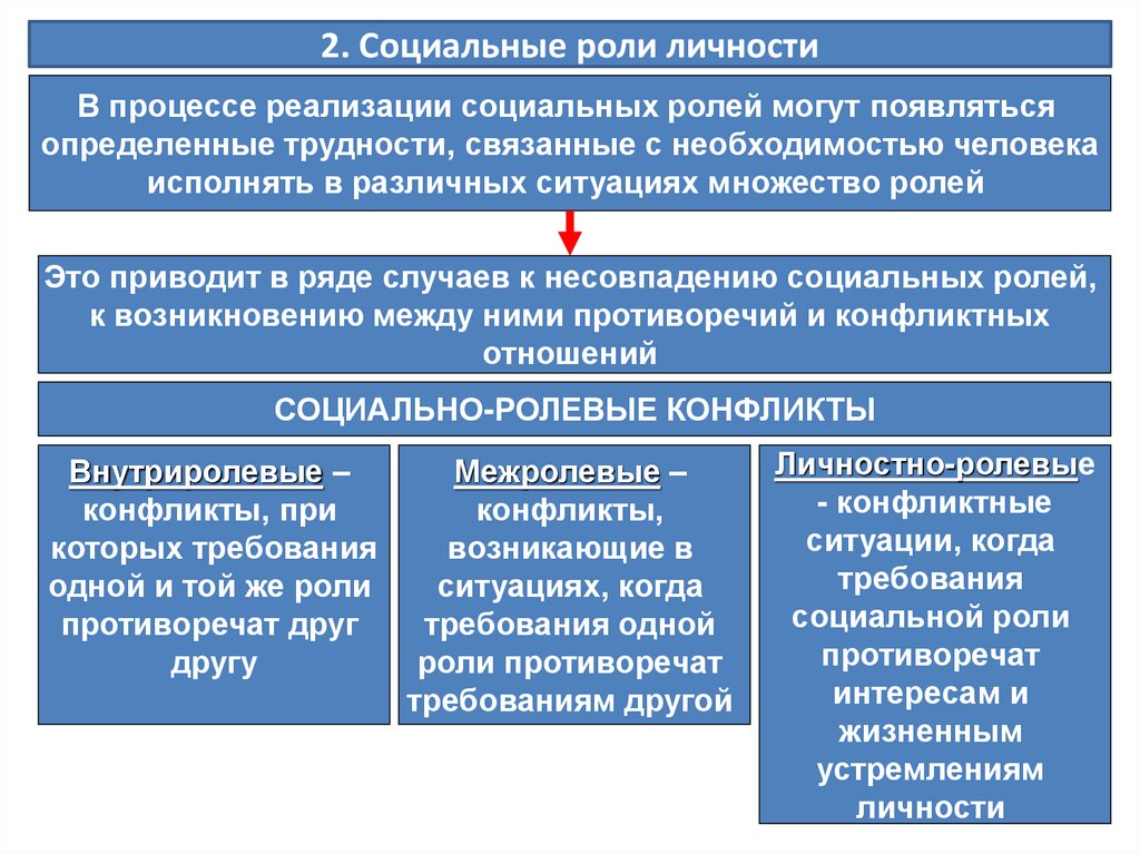2. Социальные роли личностиВ процессе реализации социальных ролей могут появляться
