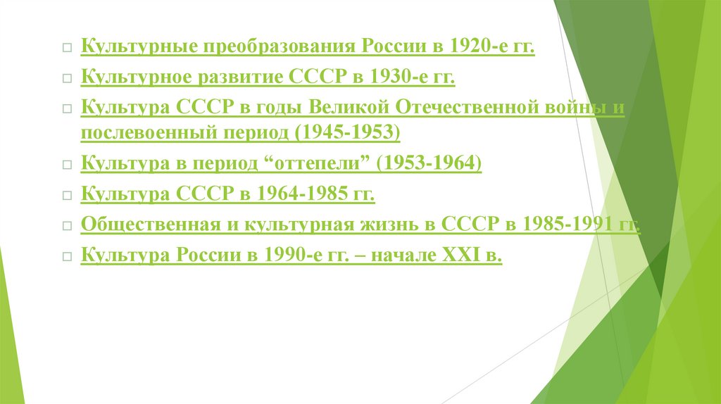 Культурные преобразования России в 1920-е гг.Культурное развитие СССР в 1930-е гг.