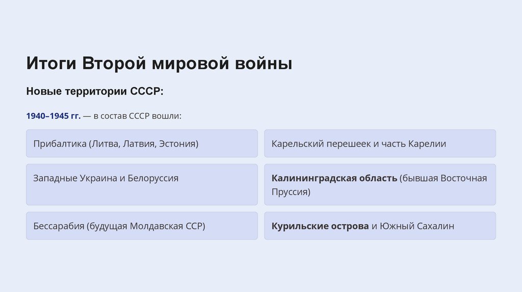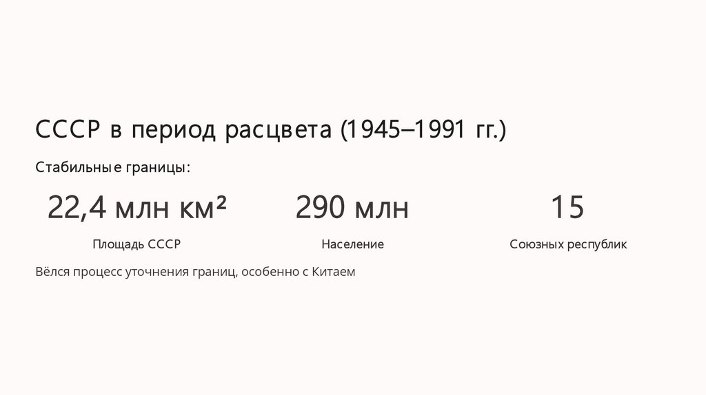 СССР в период расцвета (1 945–1 991 гг.)Стабильны е границы :