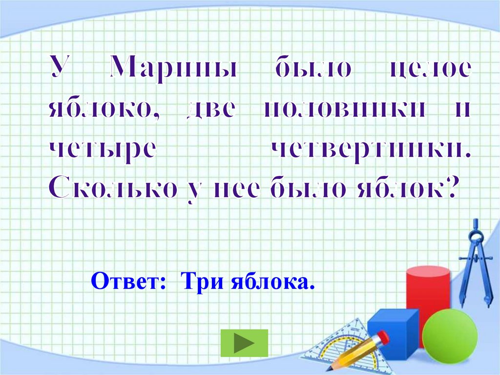 Ответ: Три яблока.19.