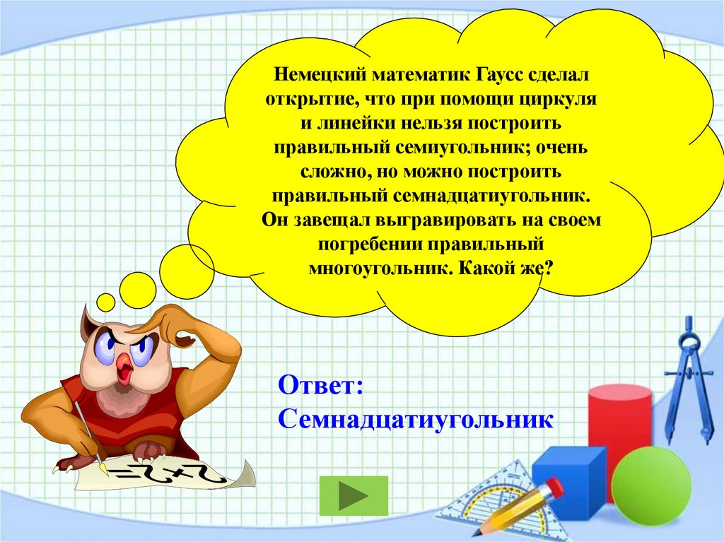 Немецкий математик Гаусс сделалоткрытие, что при помощи циркуля