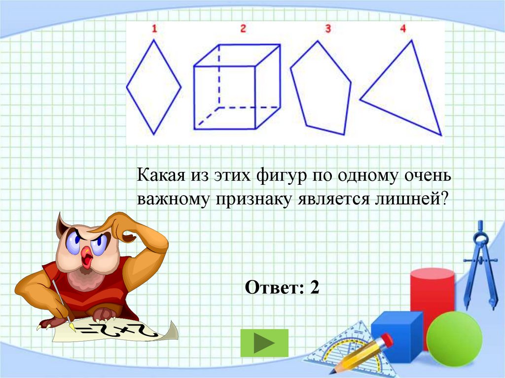 Какая из этих фигур по одному оченьважному признаку является лишней?