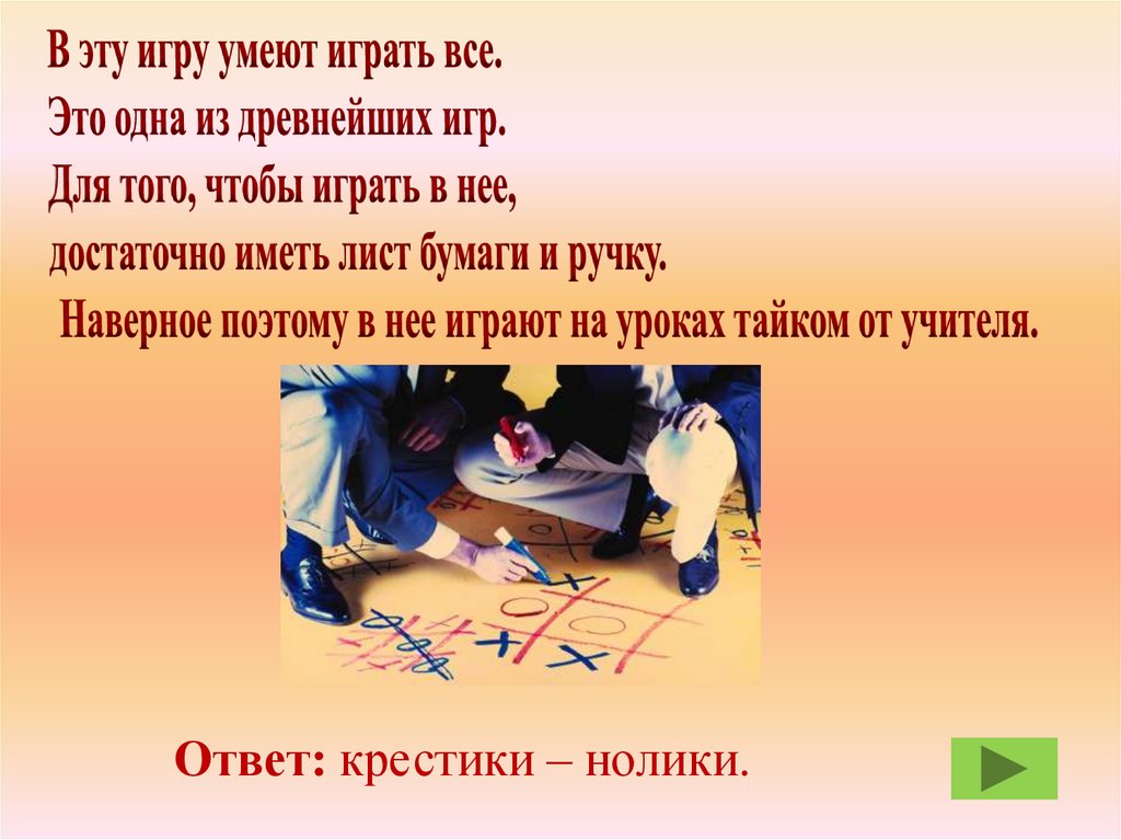 Ответ: крестики – нолики.45.