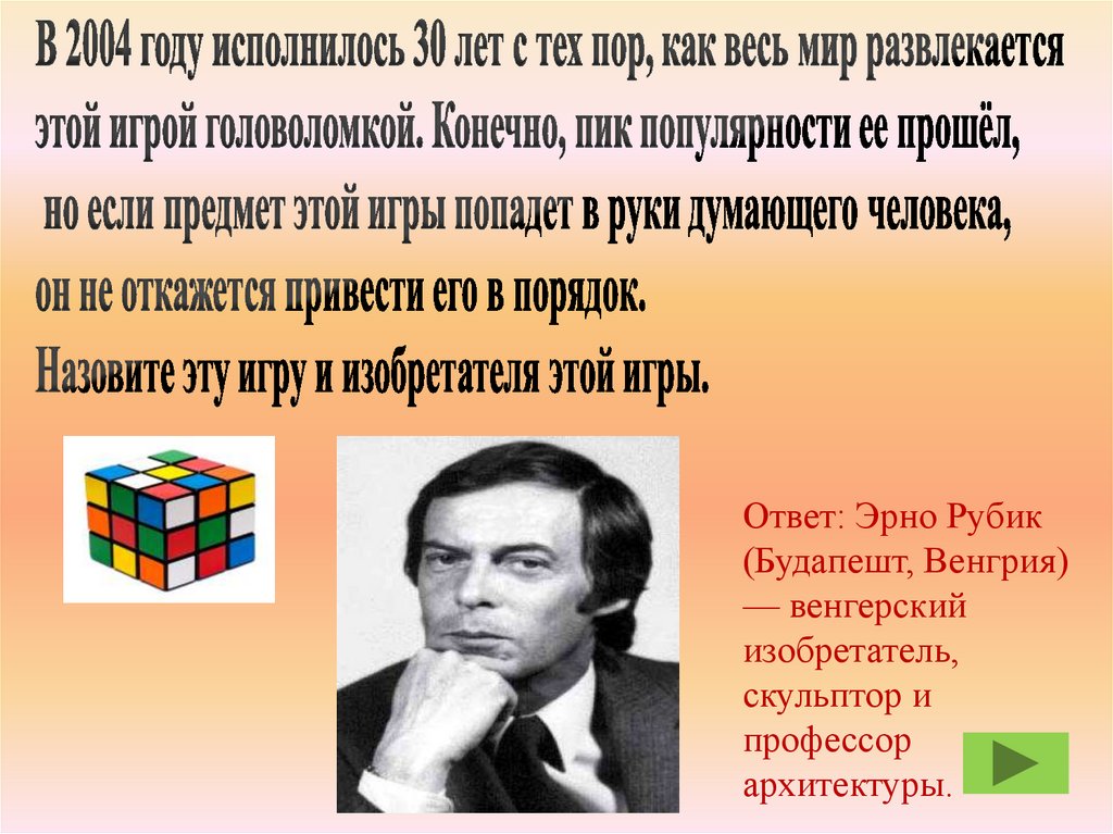 Ответ: Эрно Рубик(Будапешт, Венгрия)