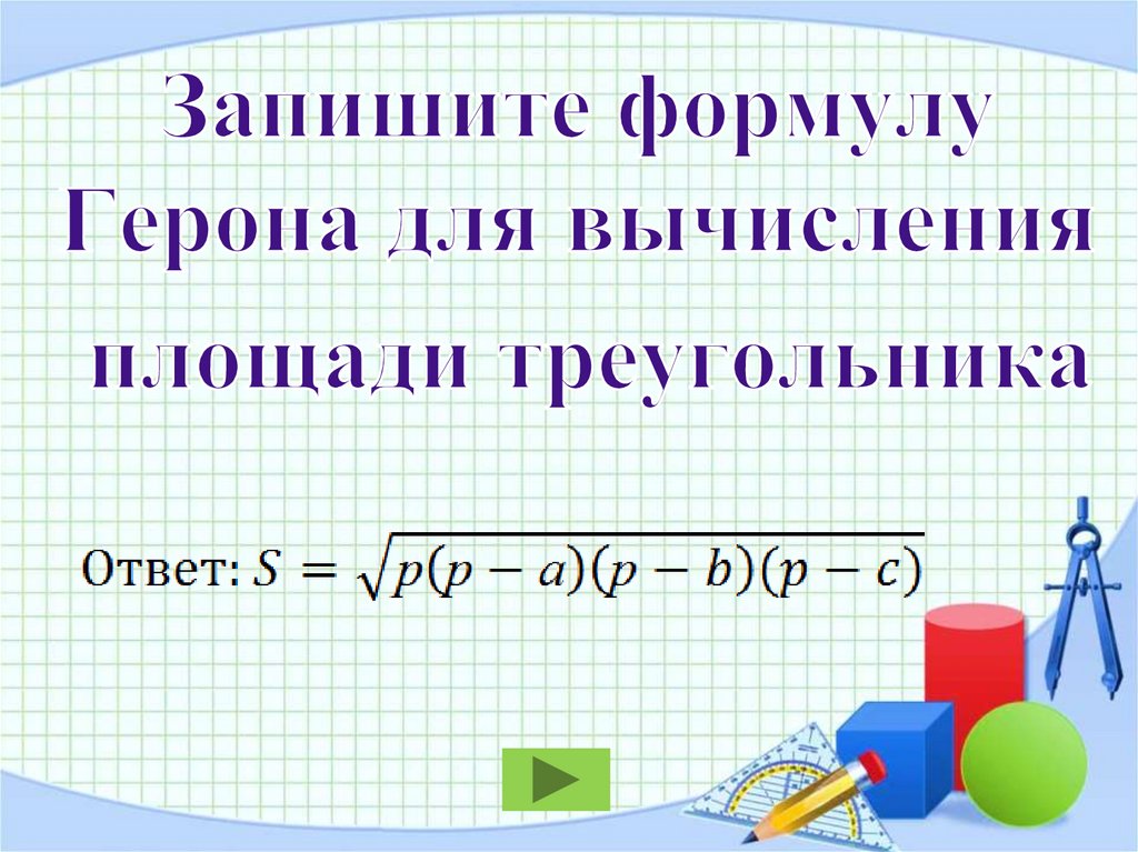 вычисления площади треугольника.