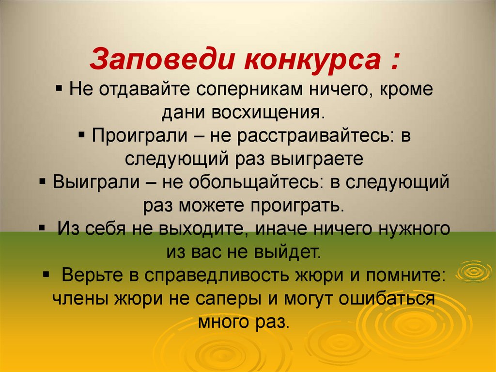 Заповеди конкурса :Не отдавайте соперникам ничего, кроме