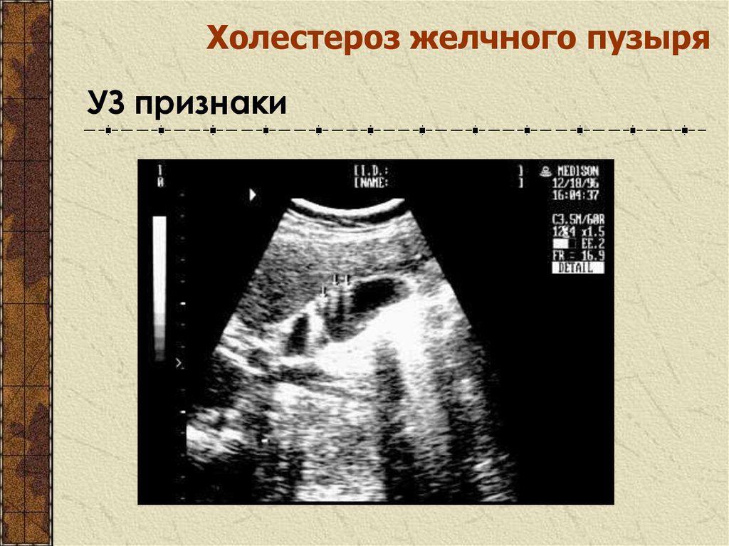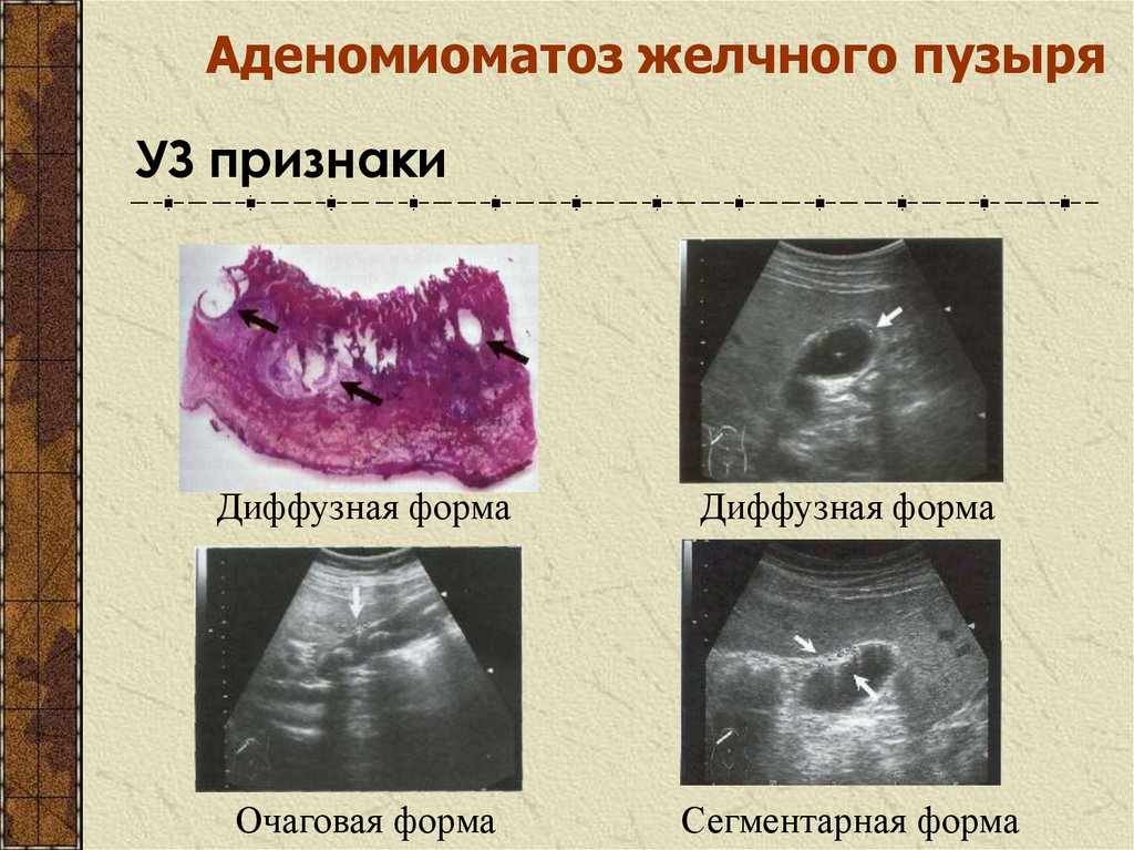 Связано с наличием в синусах АшоффаРокитанского воздуха, холестериновых