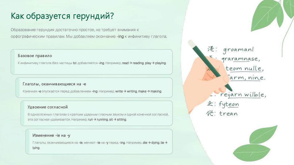 Как образуется герундий?Образование герундия достаточно простое, но требует внимания к