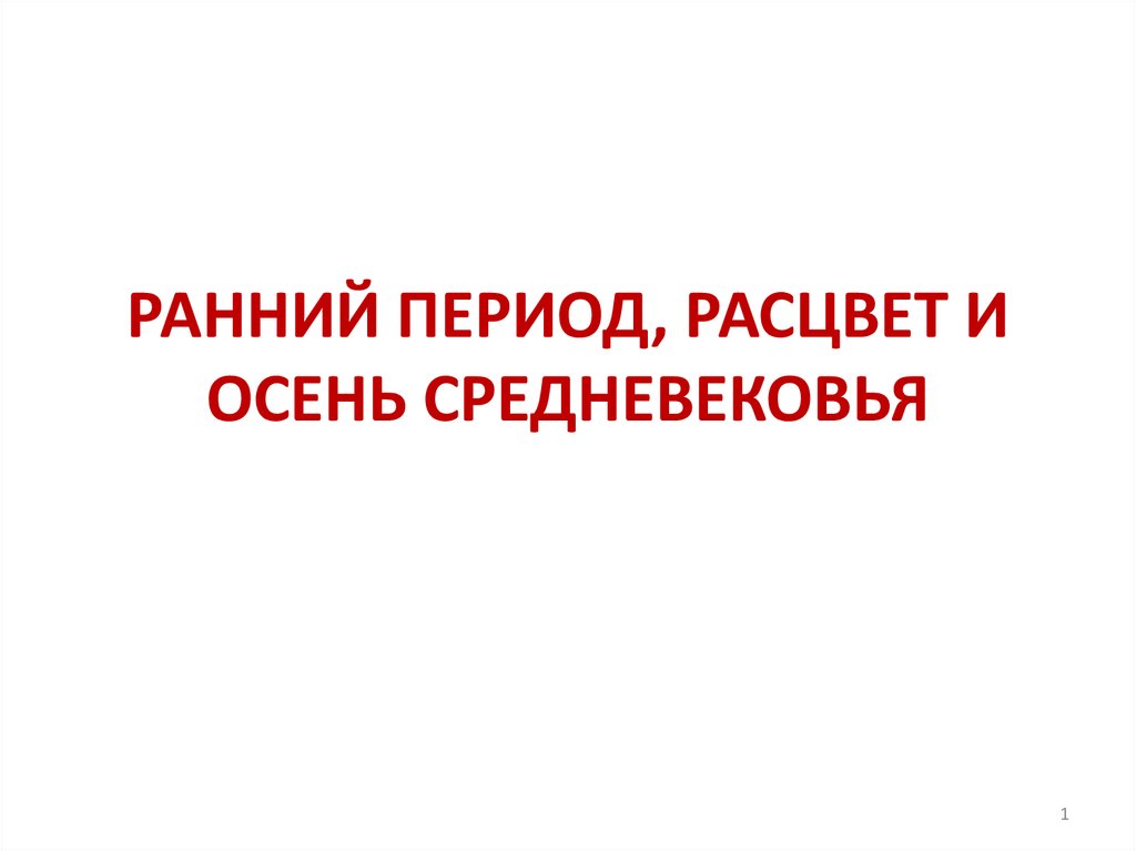 1. РАННИЙ ПЕРИОД, РАСЦВЕТ И ОСЕНЬ СРЕДНЕВЕКОВЬЯ