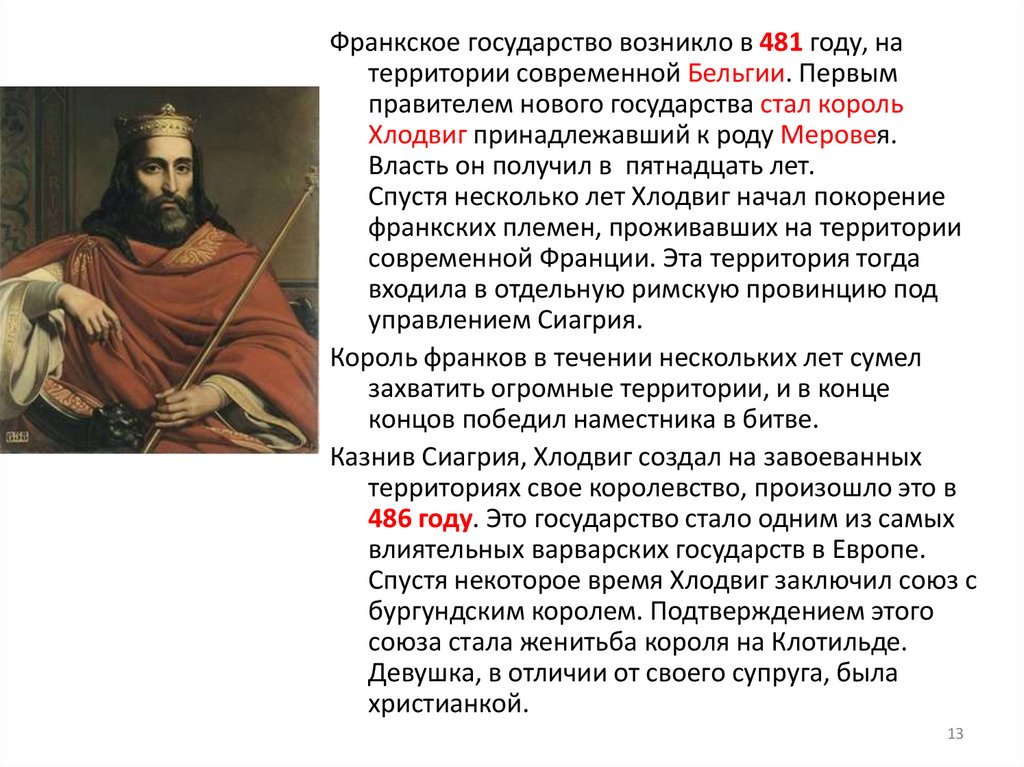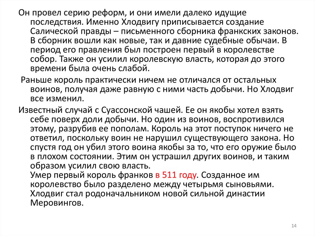 Он провел серию реформ, и они имели далеко идущиепоследствия. Именно Хлодвигу приписывается создание