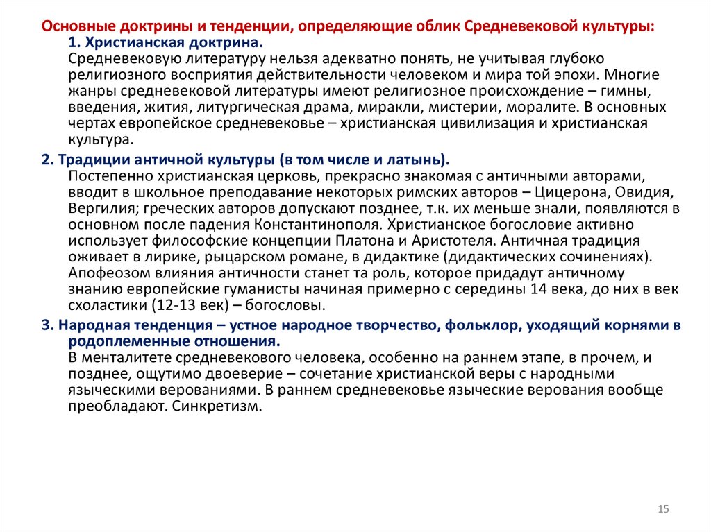 Основные доктрины и тенденции, определяющие облик Средневековой культуры:1. Христианская доктрина.
