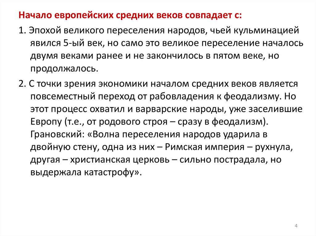 Начало европейских средних веков совпадает с:1. Эпохой великого переселения народов, чьей кульминацией