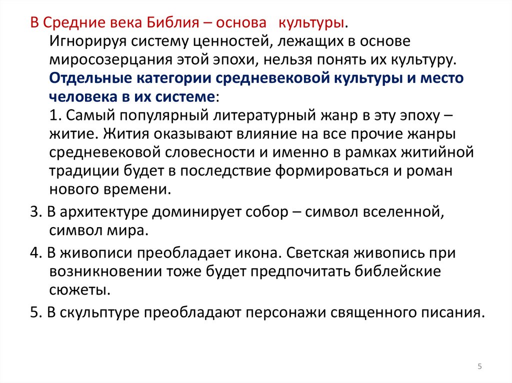 В Средние века Библия – основа культуры.Игнорируя систему ценностей, лежащих в основе