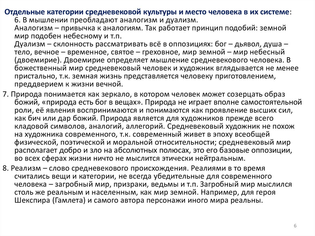 Отдельные категории средневековой культуры и место человека в их системе:6. В мышлении преобладают аналогизм и дуализм.
